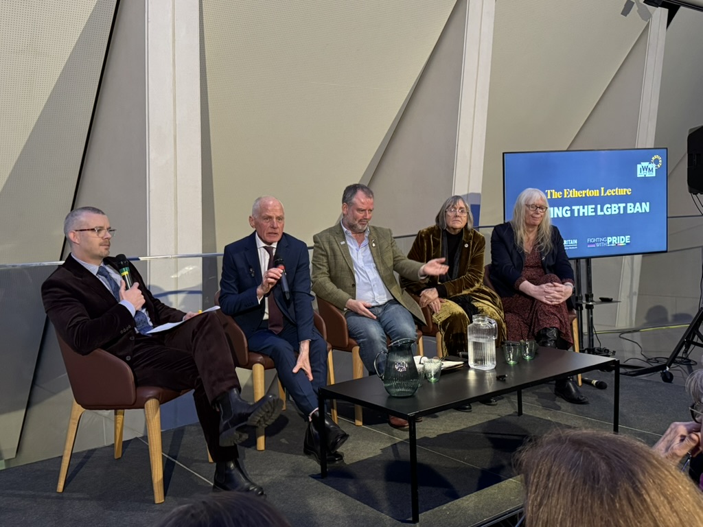 With the kind permission of Lord Etherton’s husband, Andrew Stone, Lord Cashman again delivered the lecture at an evening event in the Imperial War Museum London on Thursday 15th January 2026 recognising the 26th anniversary of the lifting of ‘The Ban’